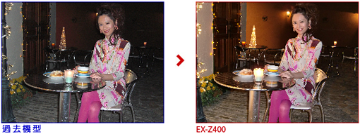 EXILIM 引擎 4.0 提升了高感光度下的雜訊濾鏡效果,降低暗處的雜訊,讓整體影像的畫質又更加提升了。