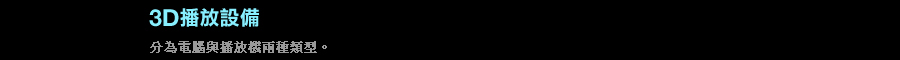 DVD以原始不加倍頻處理方式輸出時可以讓您觀賞3D影片。其他播放器(如藍光播放機、硬體播放機、硬碟播放機)則尚不能處理3D影像。 |
