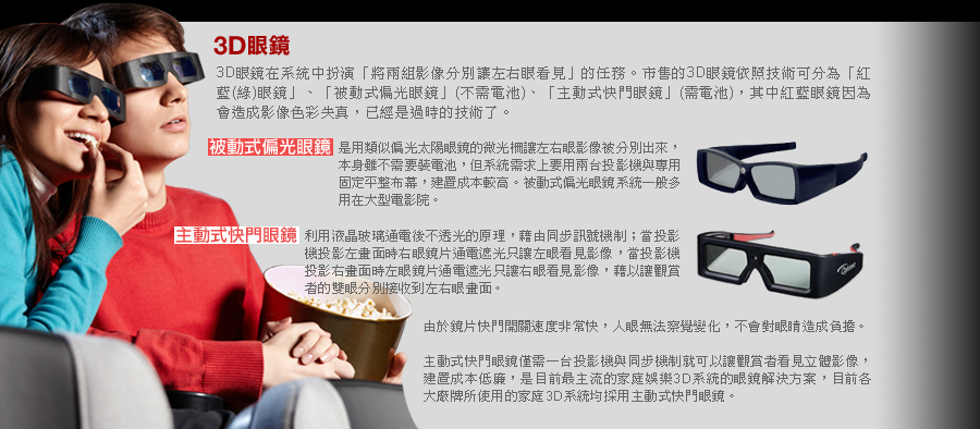 TV)等各種3D訊號,將其轉換為DLP-Link投影機能夠播映的3D訊號。輕輕鬆鬆就能用大畫面欣賞高畫質的3D內容,比市面上所有3D電視省錢又省事!